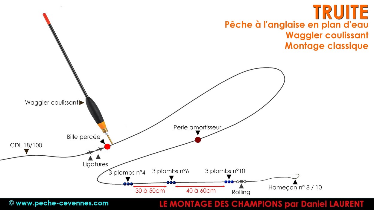 pour pêcher la truite en lac à l'anglaise waggler coulissant