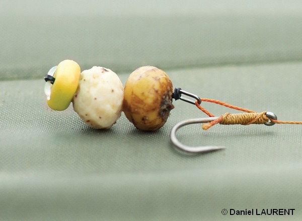 l’appât (souvent une bouillette) en dehors de l’hameçon,